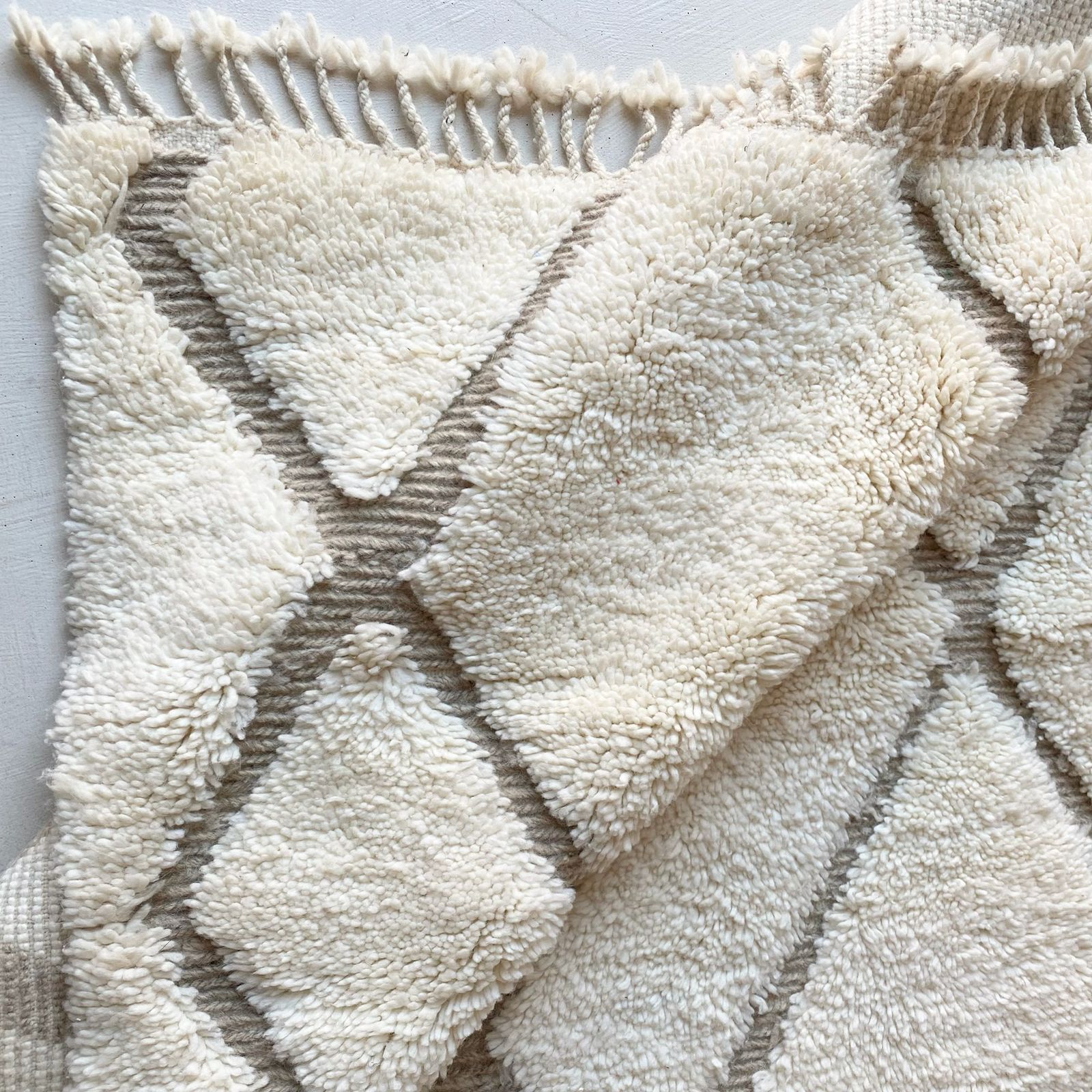 Chaque tapis Béni Ouarain est unique. De légères variations de teintes ou de légères irrégularités peuvent apparaître. Elles sont le reflet du travail fait main et participent au charme et à l’authenticité de chaque pièce.