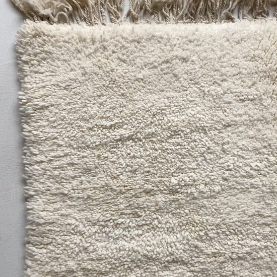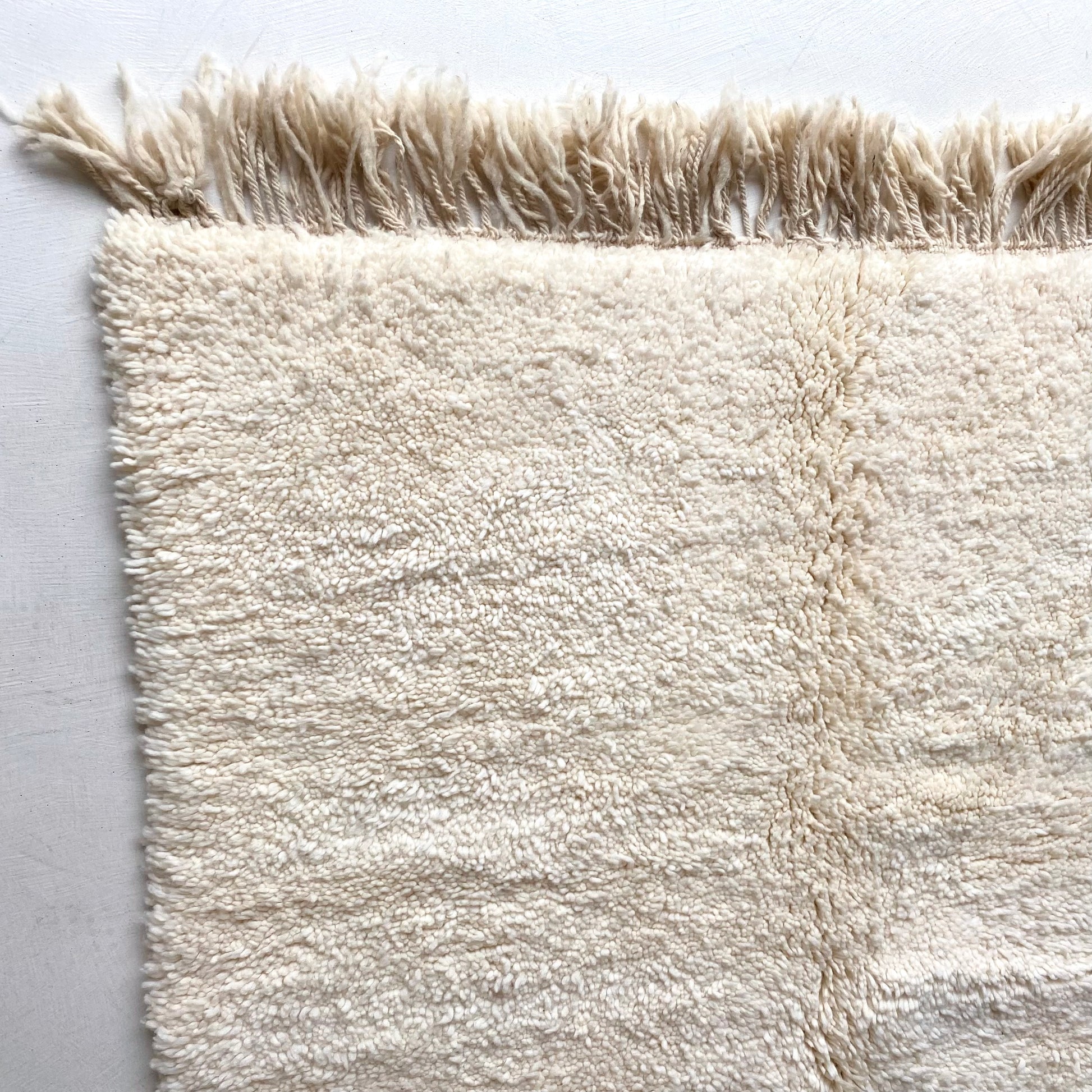 Réalisé en 100 % laine, le tapis Béni Ouarain se distingue par son moelleux, sa régularité et la finesse de son tissage. Conçu au sein de coopératives du Moyen Atlas, chaque tapis reflète un travail fait main précis et maîtrisé, donnant naissance à des pièces à la fois élégantes, durables et agréables au quotidien.