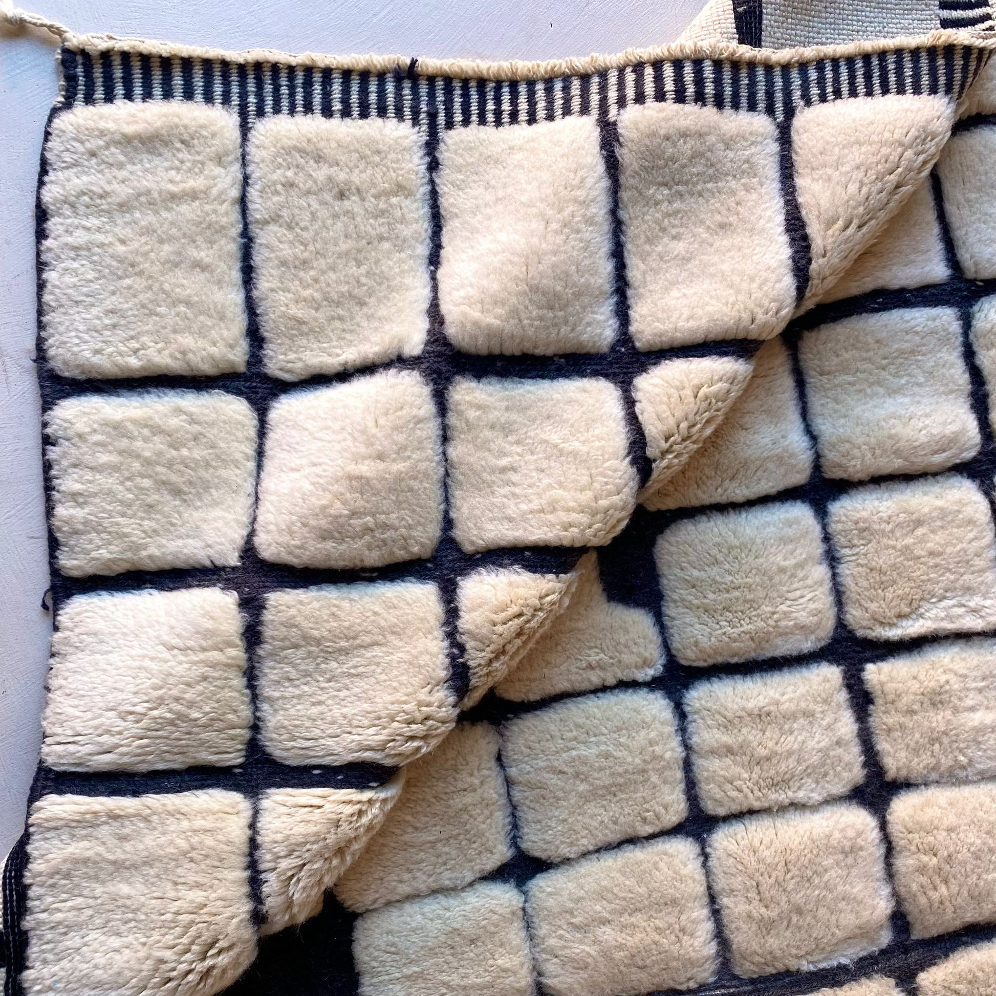 Reconnu comme l’un des tapis berbères marocains les plus qualitatifs, le tapis Mrirt se distingue par son nouage très serré, réalisé en laine, qui lui confère une densité remarquable. Il en résulte un tapis épais, incroyablement moelleux et doux sous le pied, offrant une sensation de confort immédiat au quotidien.
