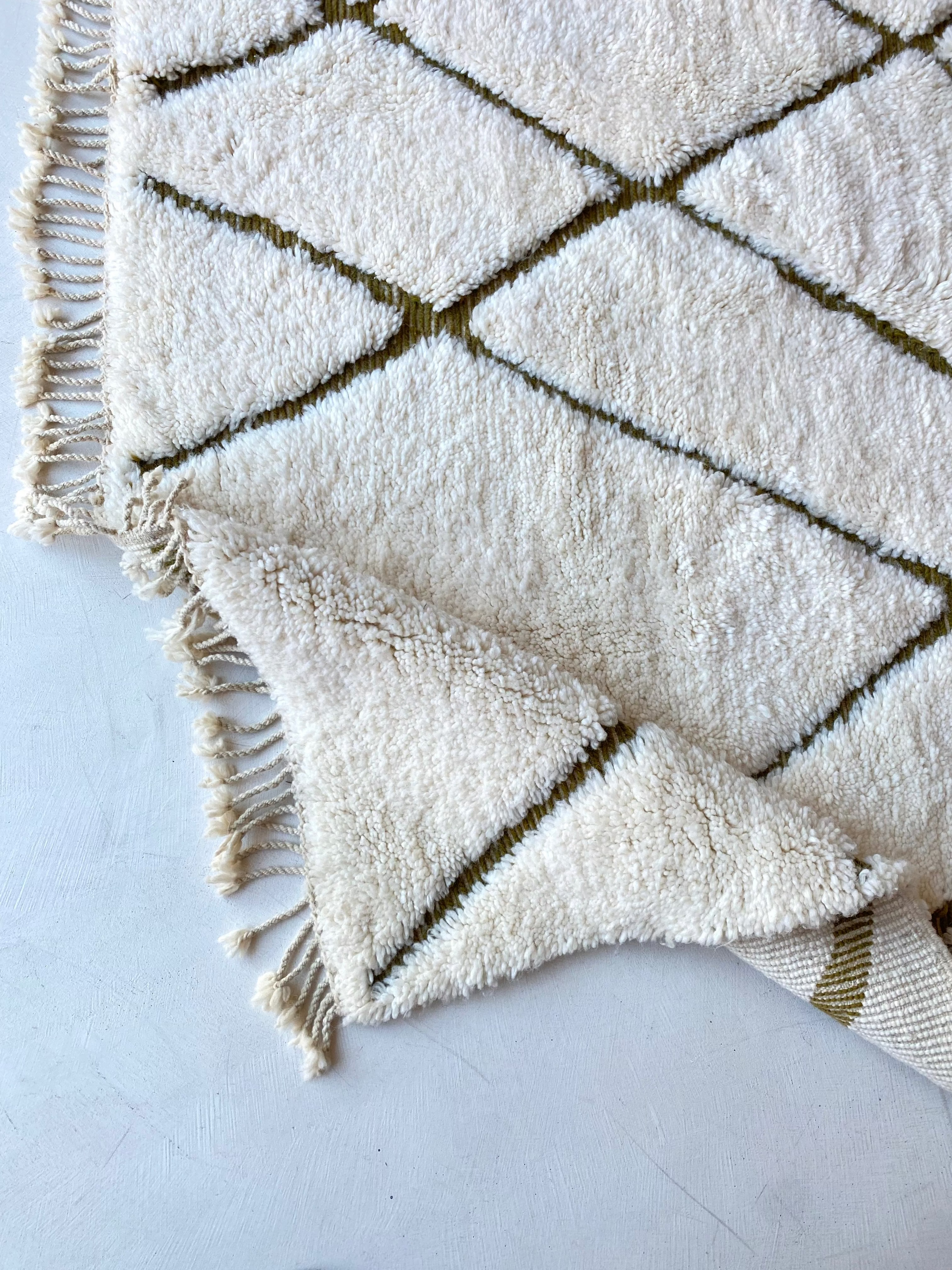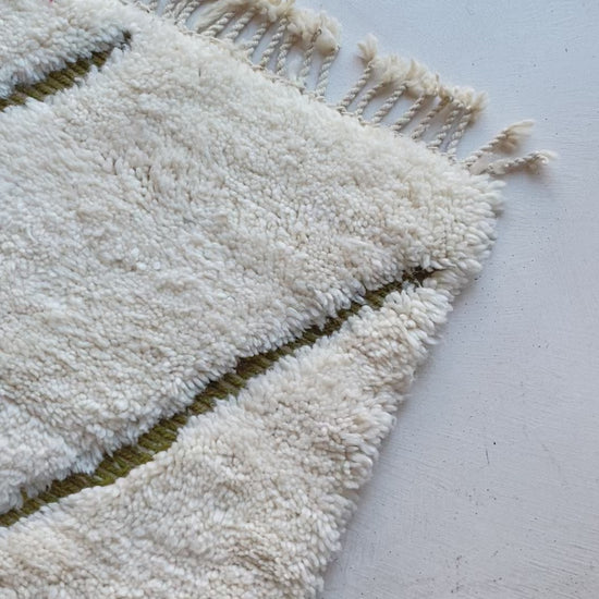 Ces tapis sont tissés avec la plus belle laine d’une coopérative située dans le Moyen Atlas, région reconnue dans la fabrication de tapis berbères appelée Khénifra.