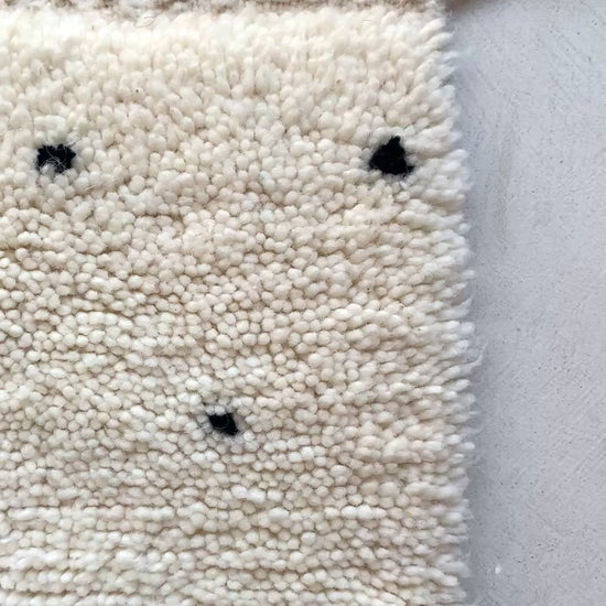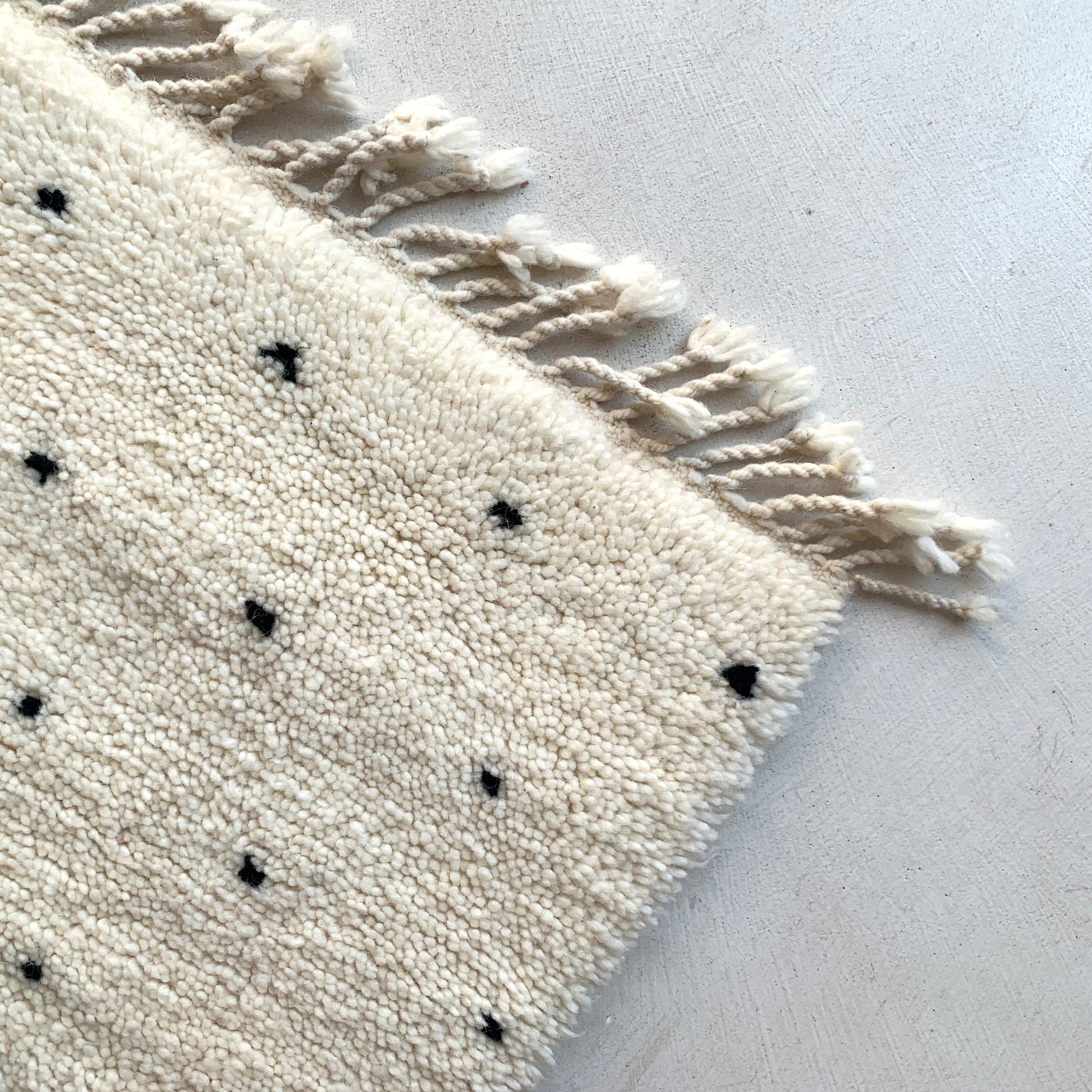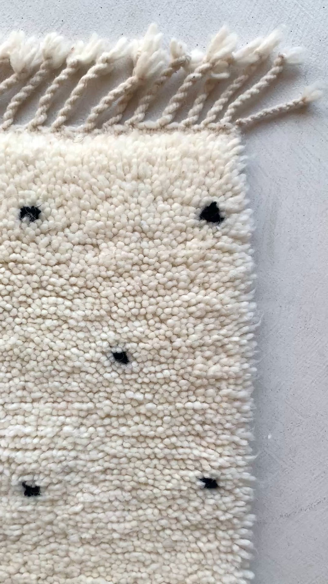 Tapis de couloir en 100% laine - Beni Ouarain blanc moucheté de noir, un tapis intemporel !
