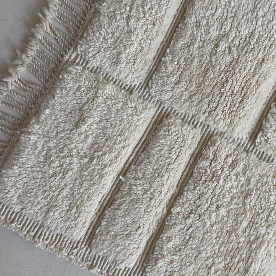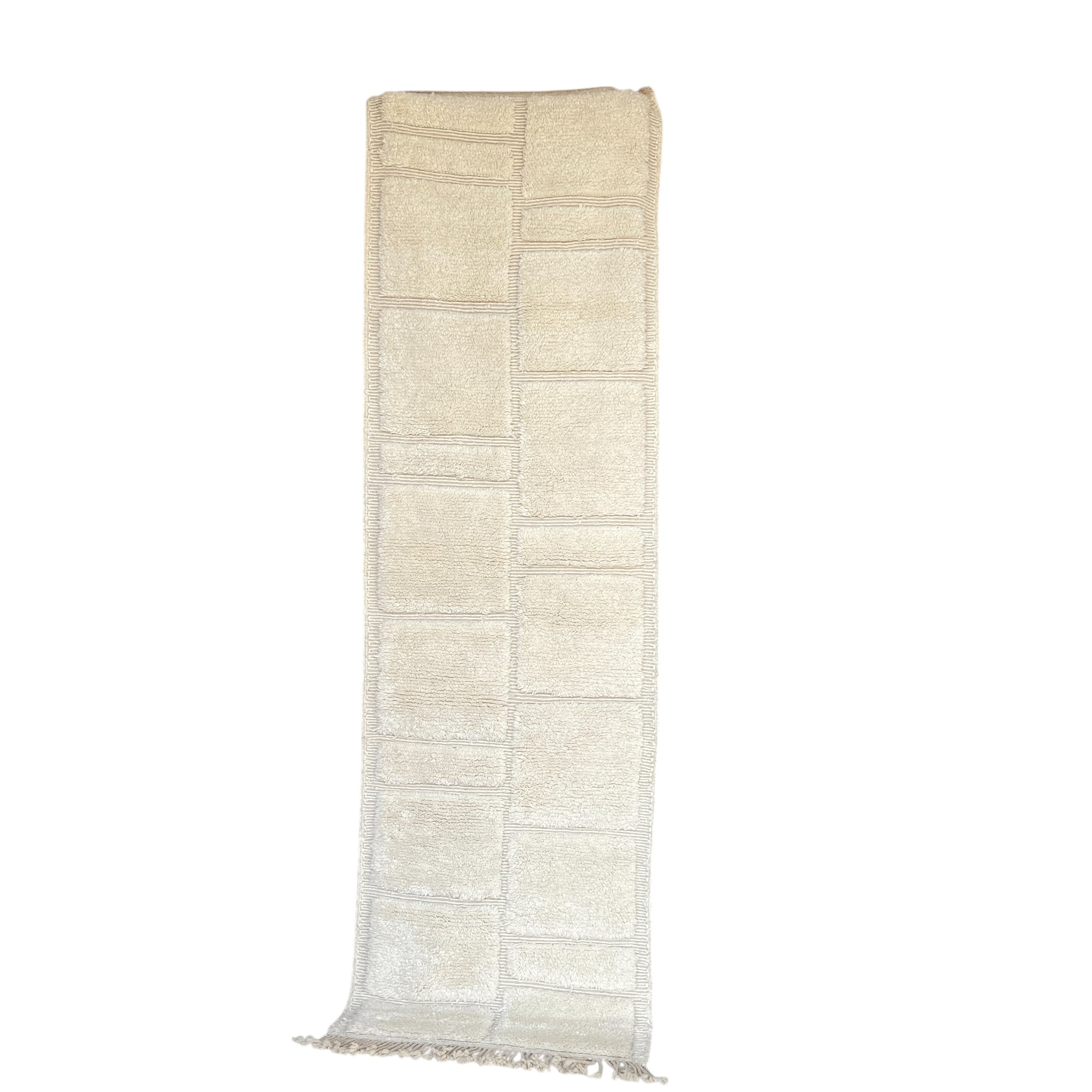 Tapis de couloir en 100% laine - Beni Ouarain blanc écru à broderie blanc, un tapis intemporel !