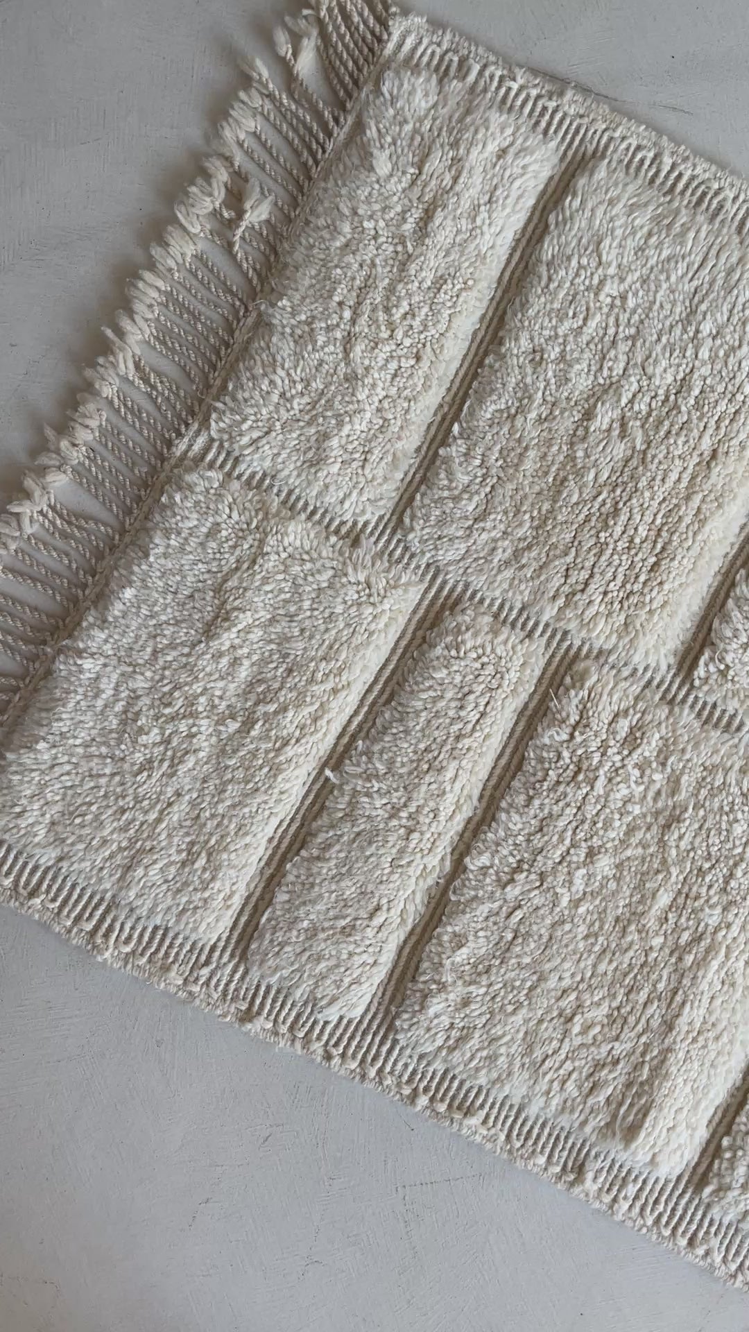 Ces tapis sont tissés avec la plus belle laine d’une coopérative située dans le Moyen Atlas, région reconnue dans la fabrication de tapis berbères appelée Khénifra.