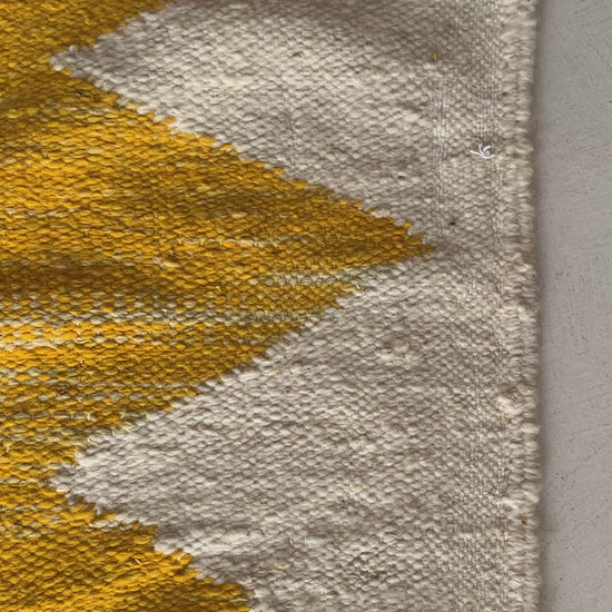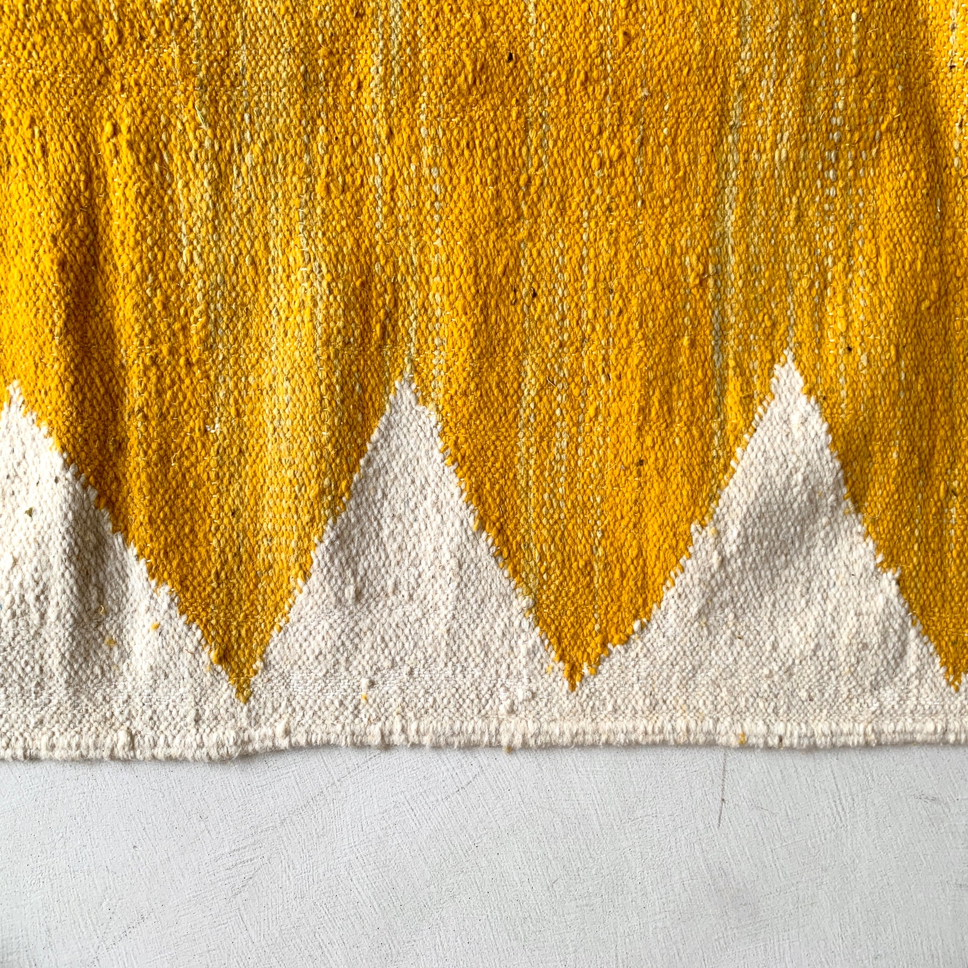 Ce que nous avons aimé sur ce tapis kilim : ce coloris jaunee, un vrai parti pris pour un intérieur de caractère.