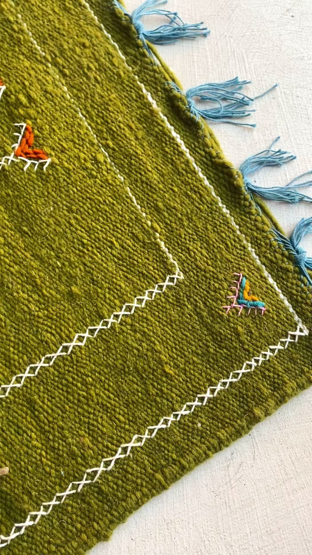 A noter que tous nos tapis sont fabriqués à la main grâce à la créativité et l’imagination de femmes tisserandes talentueuses. Chaque tapis est donc unique, avec ses subtilités de variations de couleurs et/ou légères imperfections qui renforcent sa beauté et sa valeur.