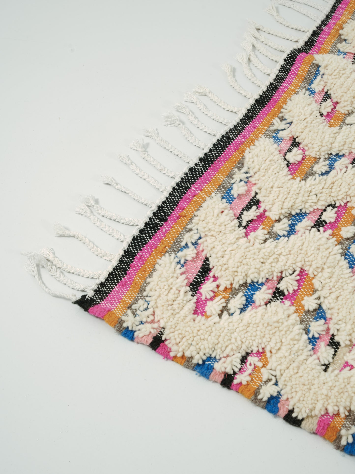A noter que tous nos tapis sont fabriqués à la main grâce à la créativité et l’imagination de femmes tisserandes talentueuses. Chaque tapis est donc unique, avec ses subtilités de variations de couleurs et/ou légères imperfections qui renforcent sa beauté et sa valeur.