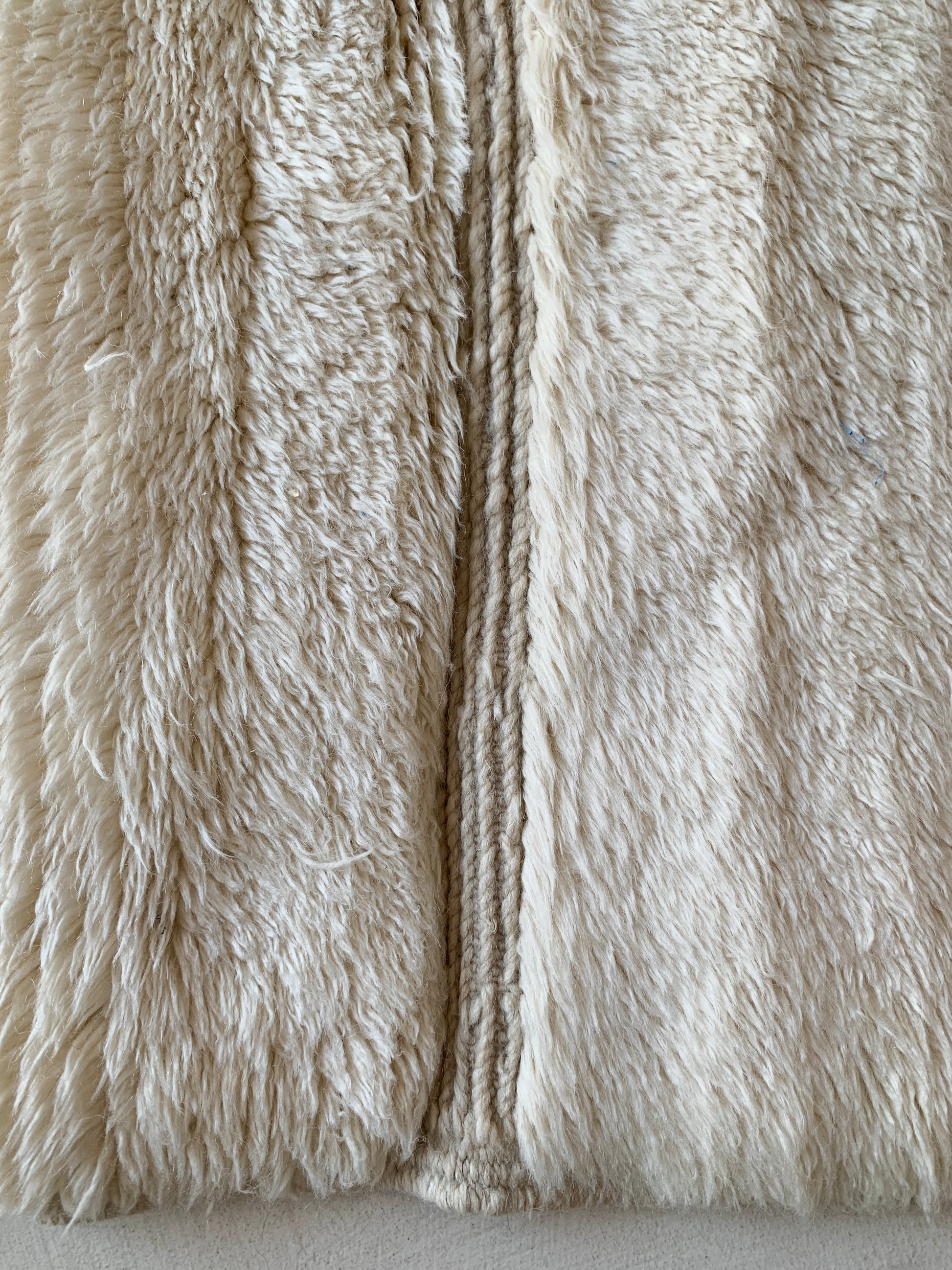 La laine utilisée pour ces tapis est de qualité supérieure, le lavage et le brossage effectués sont méticuleux et répétés à plusieurs reprises pour un résultat incomparable.