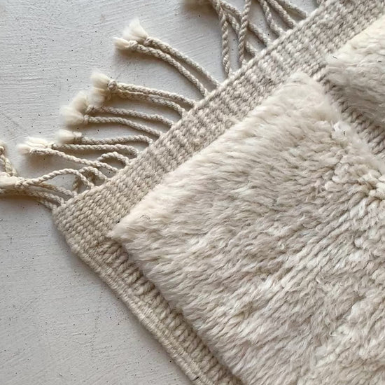 Les mrirts sont des tapis luxueux, tissés et noués très serrés pour un effet dense. Ils sont tissés à la main dans des coopératives du Moyen Atlas par des femmes tisserandes expérimentées.