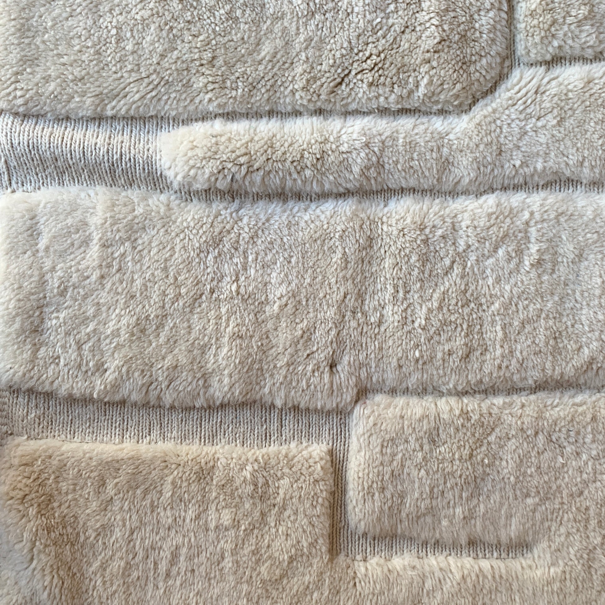 Ce que nous avons aimé sur ce tapis mrirt : ce joli blanc tout doux mais pas trop clair facile à associer à tous types d’intérieurs et ces motifs en relief pour une touche résolument moderne !