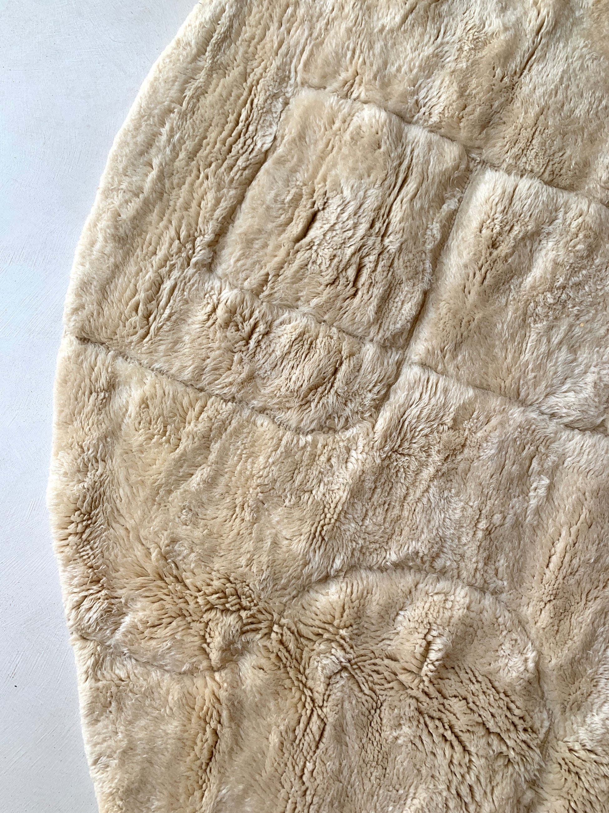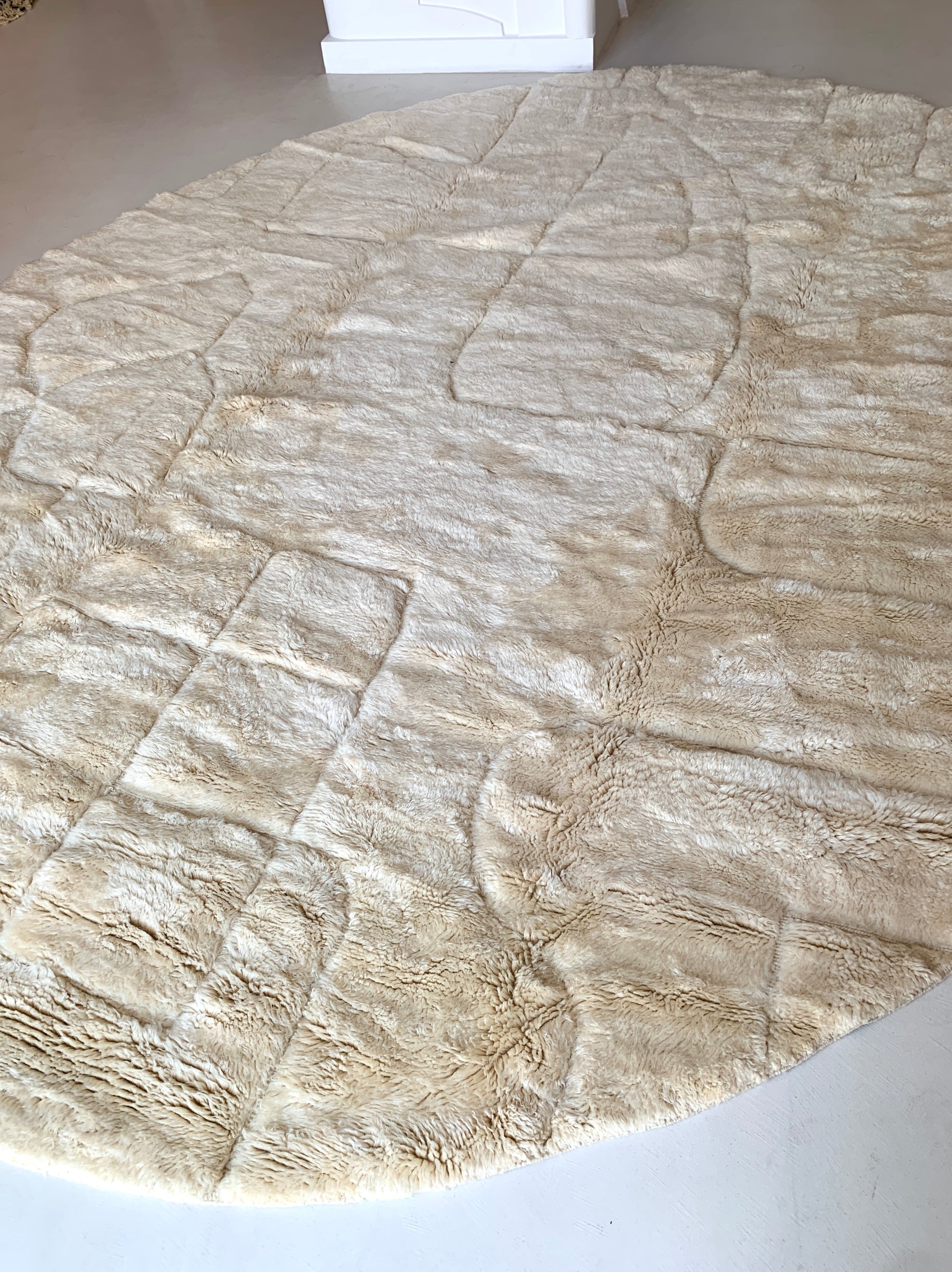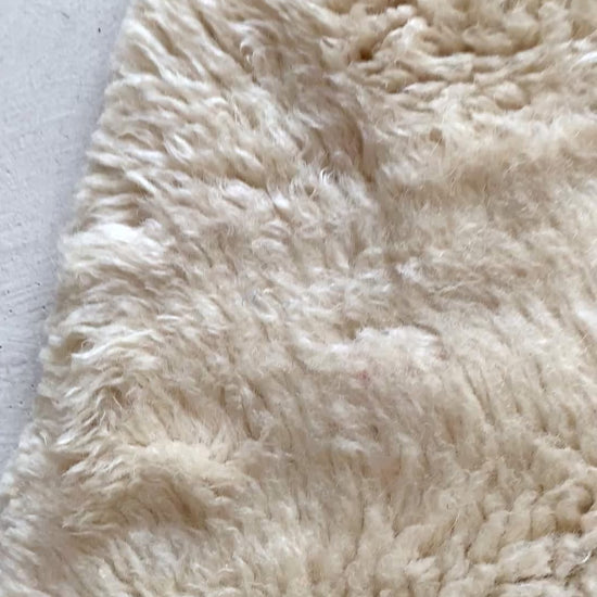 La laine utilisée pour ces tapis est d'une qualité exceptionnelle, sélectionnée avec soin pour sa douceur et sa résistance. Le processus de lavage et de brossage est effectué avec une précision minutieuse, offrant un résultat aussi esthétique que durable.